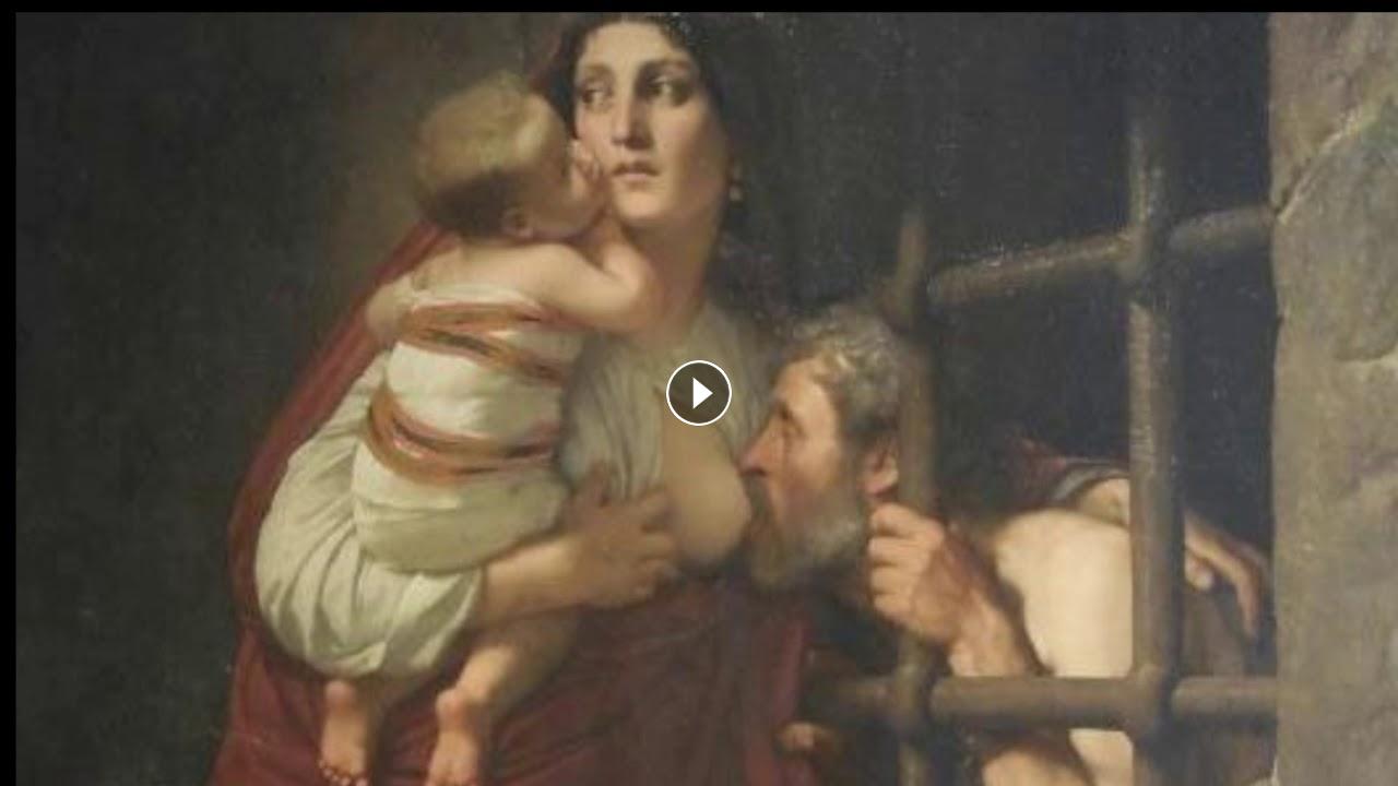 And the girl goes in and out of the visit every day without food for months. Within months, Simon's starvation and death were expected, but the man continued to get better and better for 6 months. The palisas noticed this and when they spied what he was eating, they saw that his own son was nursing the breast of her infant son in order to save her father's life.